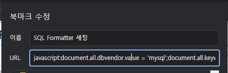 위와 같이 즐겨찾기 등록 후 수정을 통해서 Javascript 로 설정값을 세팅하도록 했습니다.