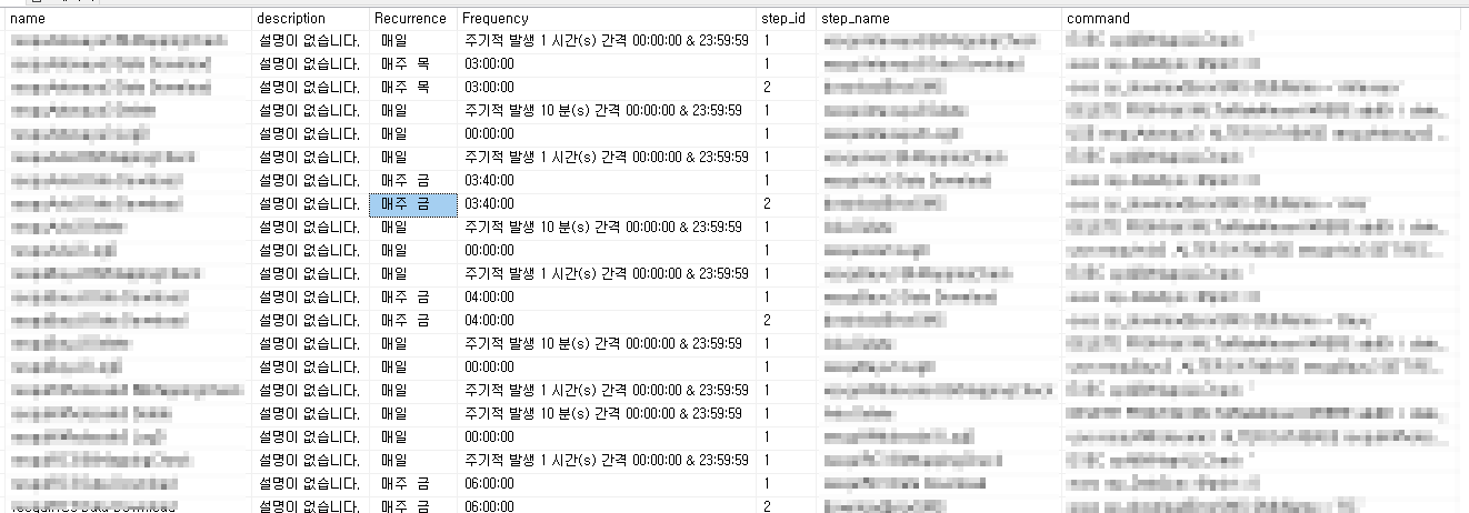 SQL Server 에이전트에 등록된 작업 목록 조회