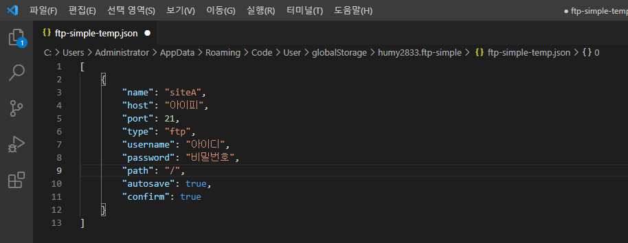 위와 같이 보이시면 ftp-simple : config - FTP connection setting 을 선택합니다.