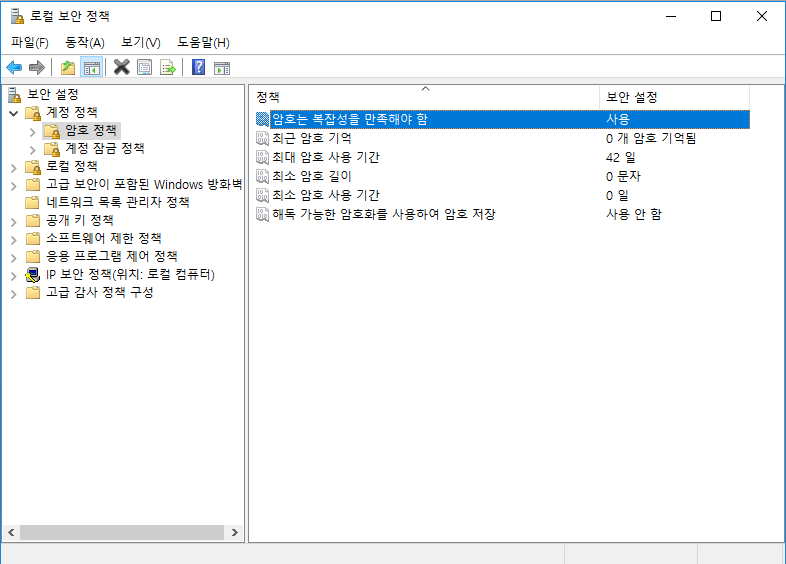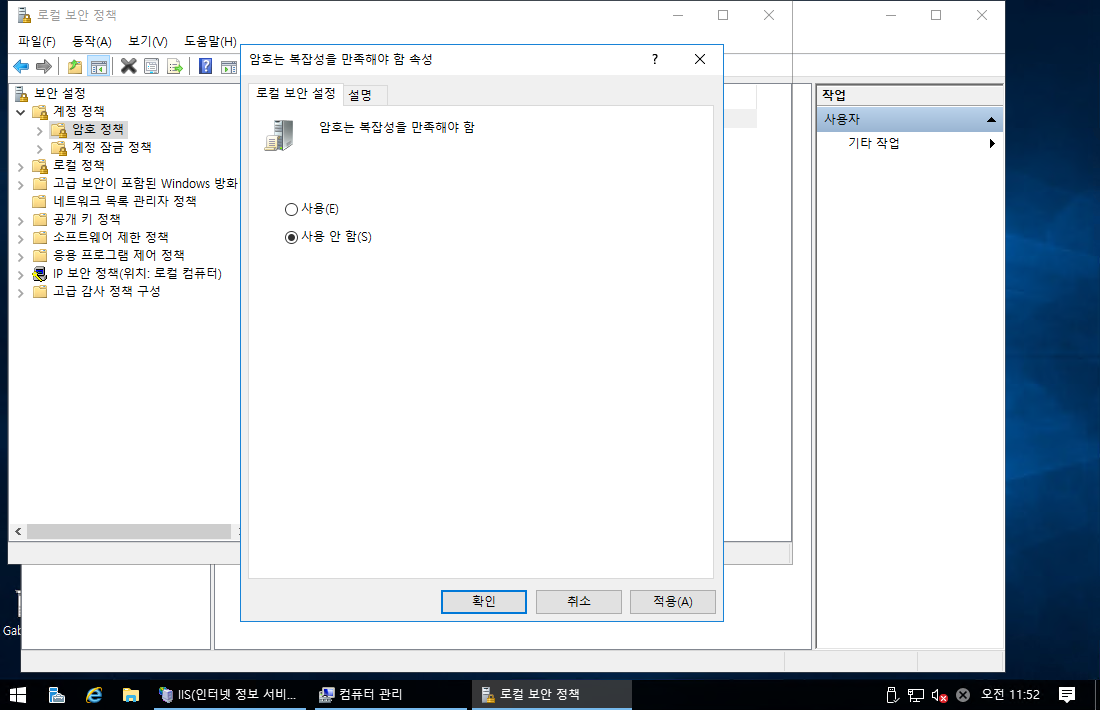 3. 로컬 보안 정책 - 계정 정책 - 암호 정책 - 암호는 복잡성을 만족해야 함