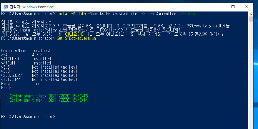 Install-Module -Name DotNetVersionLister -Scope CurrentUser #-Force